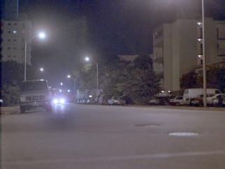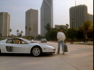 Then we see more footage reused from Stone’s War. The camera was at 16th Street and the Testarossa was southbound on West Avenue, Miami Beach. Then it passes the camera and continues south on West Avenue.