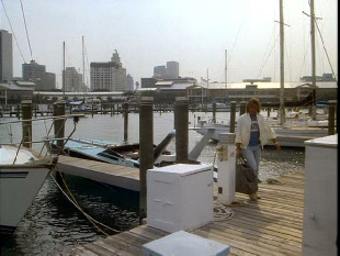Then we see Crockett say goodbye to”his” boats and his former life. Filmed on location at Miamarina at Bayside, Miami.