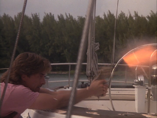 Next we cut to the boat. This was filmed on location in No Name Harbor on Key Biscayne.