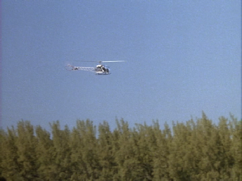 Then we see them fly over No Name Harbor on Key Biscayne. They apparently do not see the wreckage of the helicopter that Crockett shot down in this shallow, clear water harbor.