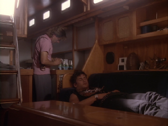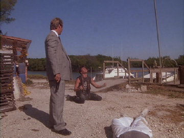 Goof: We see someone walking behind the boat. Problem is the story has no one else being there at the time. It’s some time later that Tubbs arrives.