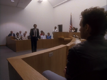 Then we cut to the inside of a courtroom. This was filmed on location inside the North Dade Justice Center.