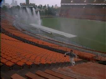 Then we cut to the Orange Bowl where Kevin learns about his dad. Filmed on location at the Orange Bowl.