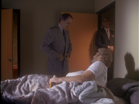 Then we see Stan call into the OCB. The OCB interior was filmed on studio set. Stan’s location is unknown.