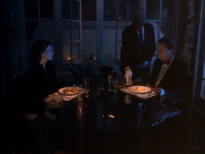 Lisa and Boyle have a nice dinner. Filming location unknown.