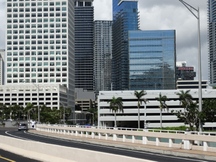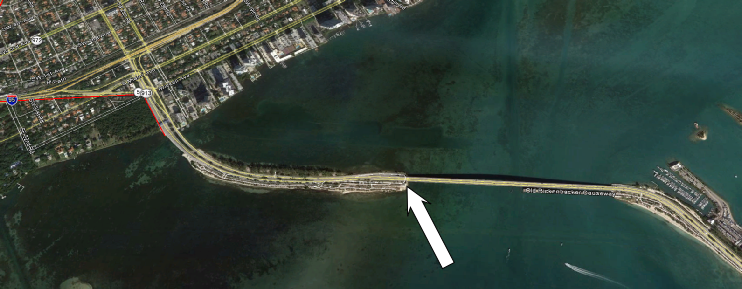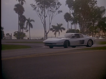 Intercut we see the Testarossa head under the Rickenbacker Causeway Bridge on the
