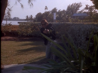 Then we see Boyle talking via the phone to Enriquez. Boyle is in the Greenberg Traurig Building while Enriquez’s is in his boat house. Enriquez was filmed on location at what at the time was a large property located at 3946 Main Highway, Miami. Now the property has been divided into 8 different properties and where Enriquez was filmed is now 3307 Devon Court, Miami. We see this location better four scenes later in the episode and that is how I was able to locate it.