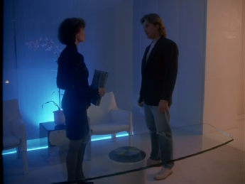 Aware now of reality, Lisa meets with Crockett to provide him help. This is in the law office that was likely filmed inside the Greenberg Traurig Building but I have not confirmed this yet.