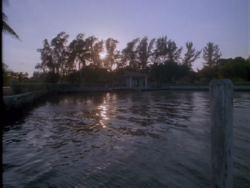 Then we go to Enriquez’ boat house where we had seen him talking with Boyle on the phone a short time ago. Filmed on location at what is now 3307 Devon Court, Miami.
