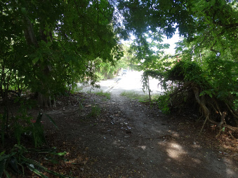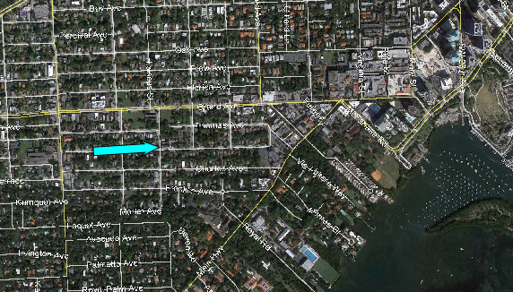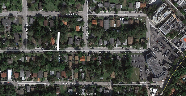 We cut back to Tubbs chasing down the interloper on Thomas Ave. Though the street dead ends, he keeps going and turns northbound in the vacant lot toward Grand Ave. He lightens his load in the lot and swings back around and escapes onto Hibiscus Street and then immediately turns westbound on Thomas Ave.