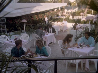 Then we see Castillo having lunch with Captain Highsmith. Highsmith is running for office and is looking for Castillo’s support. When it becomes clear that Castillo is not buying in, the lunch ends quickly. Filmed on location at the Fairmont (Fairwinds) Gardens Restaurant. 1000 Collins Avenue, Miami Beach. We have seen this location used in Mirror Image and Jack of all Trades as well as in the movies, All About The Benjamins and The Specialist.