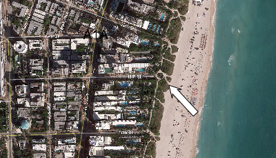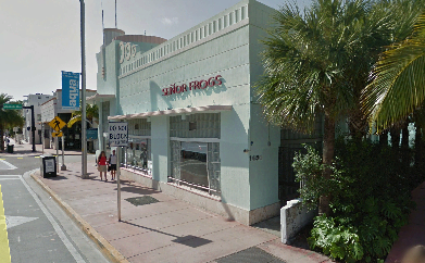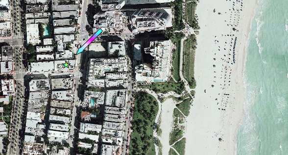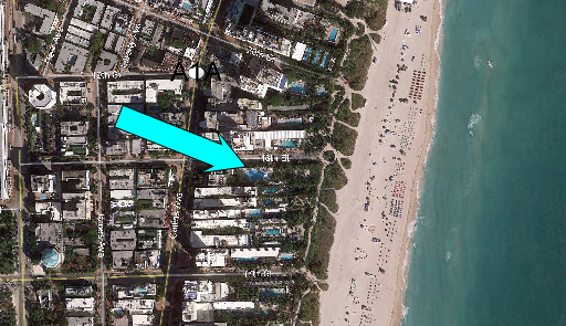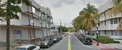 We then see C+T leaving the club. The camera is set up on the west side of Collins Avenue, just north of 1450 Collins Avenue filming southward toward Espanola Way. C+T round the corner as if they just exited the China Club. They walk northbound with what is now Grillfish seen in the background.