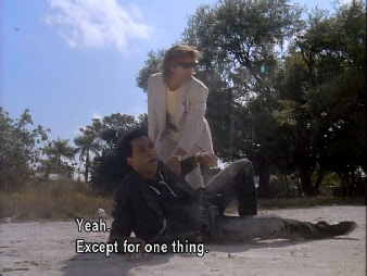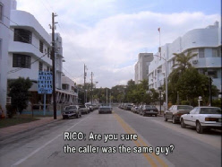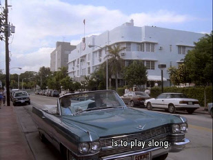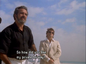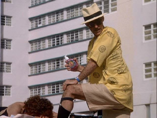 Next we see Hawkins meet with Victor Escalante for some beach golf and arms talk. This was filmed on location on Miami Beach at 18th Street.