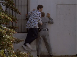 As the bust goes bad, Tubbs sees the interloper pass by the front of the house, westbound on William Ave.