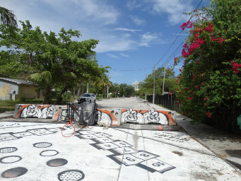 Next we see them riding along a canal. This was filmed at a now famous Burn Notice area. We see them riding southbound along the Little River Canal between the canal and railroad tracks located just east of NE 4th Avenue between NE 79th Street and NE 82nd Street in Miami.