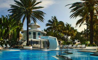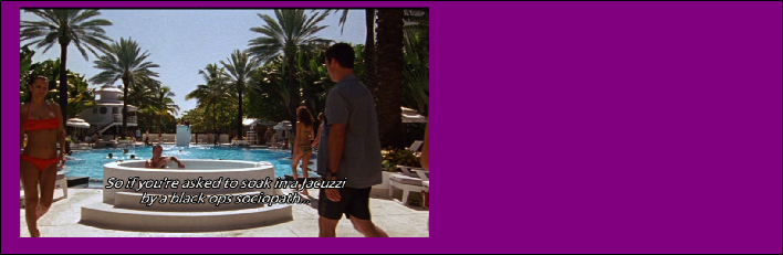 Then we cut to Izzy being Izzy, poolside. This was filmed on location at the Raleigh Hotel. 1777 Collins Avenue, Miami Beach. We have seen this location used in the Movie Fair Game where William Baldwin and Cindy Crawford hid out here. We have since seen it in the Burn Notice Episode Enemies Closer (#41).