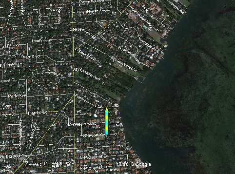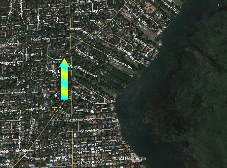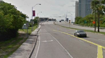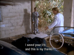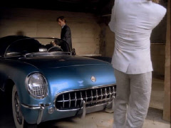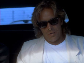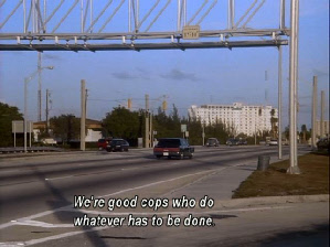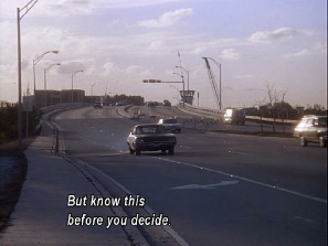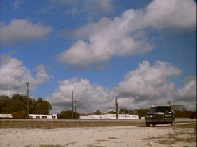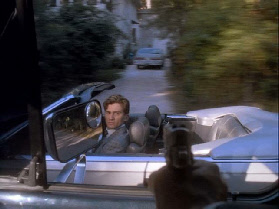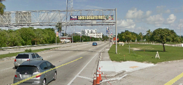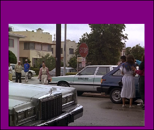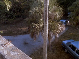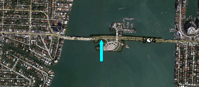 Then we see a street view of the limo coming over a bridge toward the camera. This was filmed on location on the 79th Street Causeway with the camera positioned just west of Pelican Harbor Drive and viewing west.