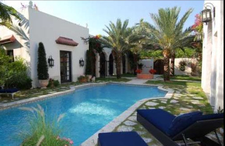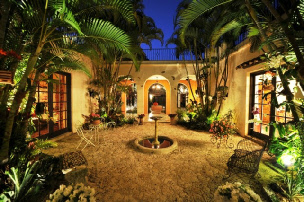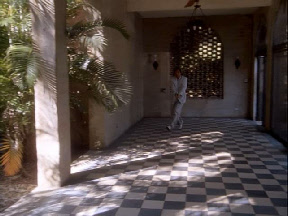 Crockett pursuits through an open air loggia and courtyard. DeGarmo was well known for this type of architecture.