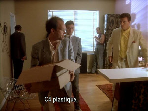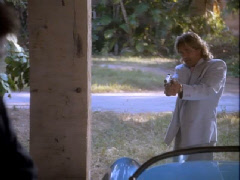 Then we cut to the take down. Filmed on location at what was 3952 South Douglas Road, Coconut Grove. This property was subdivided sometime between 1994 and 1999. This residence still remains but it is hard to realize as it has been significantly modified and closely surrounded by other residences. The address since subdivision (DeGarmo Estates) is now 3710 De Garmo Lane. It was originally built in 1921 as the home of the famed architect Walter Degarmo. Vice fans may appreciate that among his notable masterpieces was 42 Star Island that was featured prominently in episode 11, Little Prince. We saw this location used previously in the episode, Rock and A Hard Place where it was the scene of an attempted hit at a photo shoot.