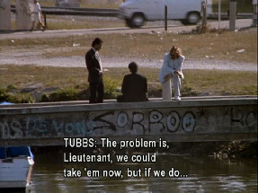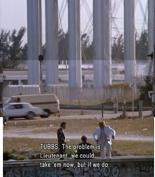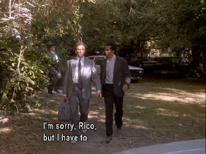 Crockett apprehends Stevens but Highsmith sneaks in and kills Stevens with the implication that he does so to cover up his involvement in the criminal cop organization. This of course makes absolutely no sense. If he were involved, and having been tipped off by Lt. Castillo much earlier in the day, he would have warned his criminal squad not to show up to the deal as the OCB was on to them.