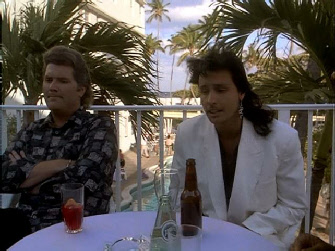 Then we cut back to the Clevelander Hotel. Rico and Stan are parked down the drive watching the action at the Clevelander. They are parked at the intersection of 9th Street on Ocean Drive.