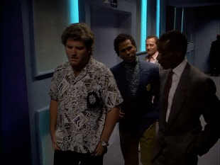 Then we see the Commissioner meet with Stan and Rico. This location is immediately recognizable from its role in episode 96, Line Of Fire. It is a studio set built at Greenwich studios that was originally designed to look like it would be the interior of the North Dade Justice Center, 15555 Biscayne Blvd.