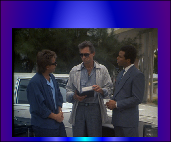 When they exit the building we see the t.v. Crew is filming them and the background reveals they have been magically transported down to the Miami Beach Police Department at 1101 Washington Avenue where they are exiting the main doorway. We have seen this location used previously in Knock Knock Who’s There, Everybody’s in Showbiz, Death and The Lady, Bad Timing, and Victims of Circumstance.