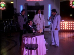 Then we see Rico and Stan meet Aguila at an outdoor bar. This was filmed on location at the Clevelander Hotel, 1020 Ocean Drive, Miami Beach. The hotel has since been renovated so the appearance has changed in part. We have seen the Clevelander used previously in The Good Collar, Viking Bikers From Hell, Mirror Image and as a drive by in Brother’s Keeper. The movie, The Specialist also filmed here.