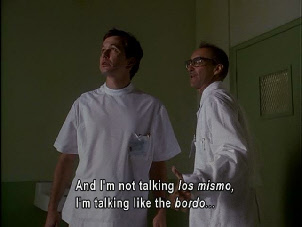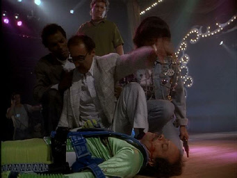 They go into the Nemo where they find lame cop Gina locked in the bathroom and Miracle Man is gone. Apparently Gina can’t even kick her way thru a junky old wood door. Filmed there on location at 100 Collins Avenue.