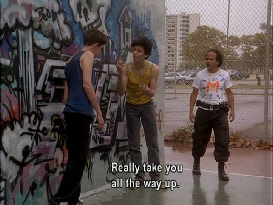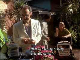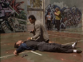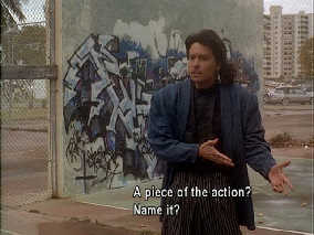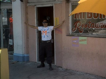 This leads us to the drug deal where Miracle Man interferes in his last drug deal. Filmed on location at Les Violins Club, 1751 Biscayne Blvd, Miami. We have seen the exterior of this club in the Pilot movie, Brother’s Keeper and in Cool Runnin’ but this is the first time we go inside.