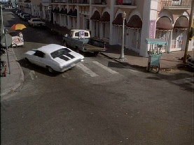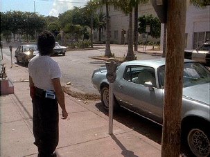 Then we see Stan and Rico in the car. They were filmed on location on Ocean Drive going northbound past the Clevelander.