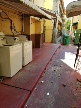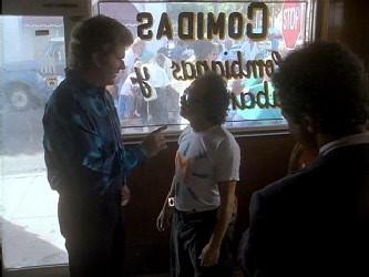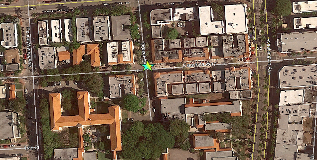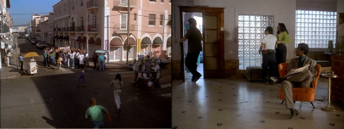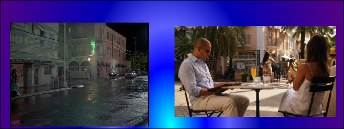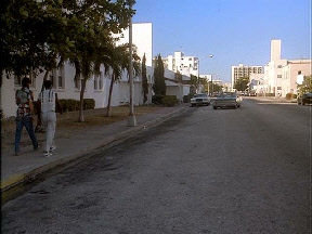 Next we see Miracle Man give away the money he just stole. This was filmed on location on Espanola way at Drexel Avenue in Miami Beach. They are on the east side of the intersection.