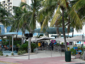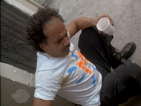 He calls Aguila who is working out of the Clevelander outdoor bar. Filmed there on location.
