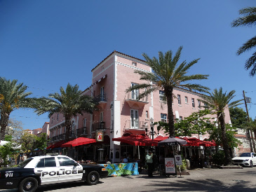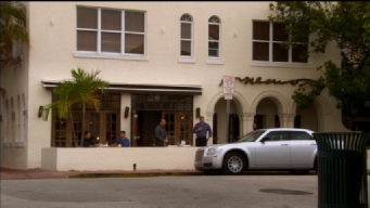 The car speeds right onto Espanola Way headed east. Miracle chases after with Tubbs and Switek in tow. They stop him in front of 440 Espanola Way.
