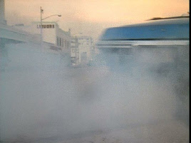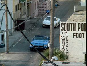 Then it cuts to westbound on 6th Street between Collins Court and Washington Street. We see the Paris Theater in the background.