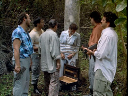 Then we see the head of the cartel, Montoya arrive in the woods where his men have one of General Borbon’s men tied to a tree. I believe this was filmed on the grounds of the Matheson Hammock County Park. In the western section that lies west of Old Cutler Road. I will have to return there to further investigate so that I can confirm this.