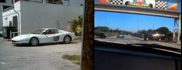 Then onto the Miami Grand Prix circuit. We see them coming out of turn 9. The new bridge is higher and blocks some of the background. Burn Notice has since used this location in Friends and Family and Guilty As Charged.