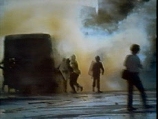 The episode starts out with footage of rioting. This was reportedly filmed in El Salvador and is footage from the movie, Latino (1985).