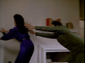 Then we go inside where filming has returned to the Deering Estate. We see her sneak past the room of little Marty in Bushido and go up to the door of the mother’s room (Laura Gretsky).