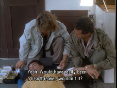 Then we see Tubbs at the field hospital. Filmed on location in the former greenhouse in the western section of Matheson Hammock County County Park.