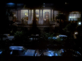 We see an exterior establishing shot of an unknown mansion. Likely in California.