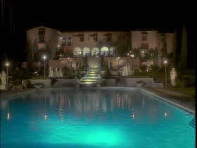 Then we see an exterior view of yet another mansion. If you think you have switched shows that is because this home was made famous in the Godfather and also used in The Bodyguard. The Hearst Mansion in Beverly Hills, CA.