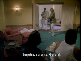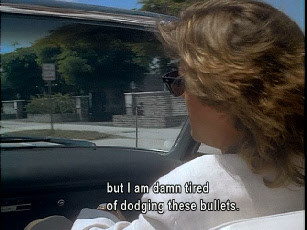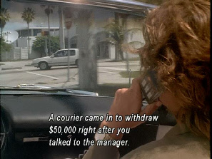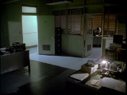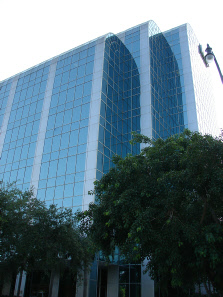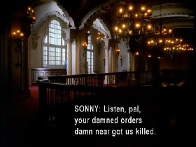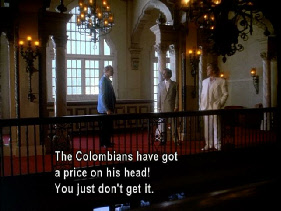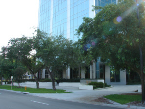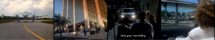 Then it cuts and we see a close up of a bank building with the camera panning down the front. Banco Libre. In reality this was filmed at 4400 Biscayne Blvd., Miami. For some time this was the IVAX building, now it is Opko Heath.