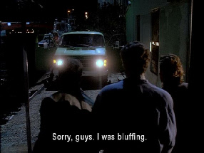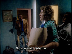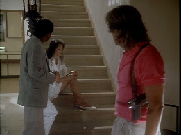 Then Stan goes into action. First we see Montoya arrive on the scene. Only in reality he is not on the scene. His directing his men into the building was actually miles away, filmed on location at Jimbo’s on Virginia Key. Whenever you see a beat up old VW in a shot think of Jimbo’s and you are likely right. This is the eighth episode of Miami Vice that we see Jimbo’s used, if you count World of Trouble before Freefall.