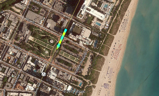 Then we see the Cadi headed southbound on Collins Avenue at 21st Street.