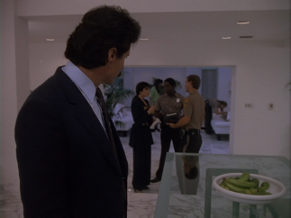 Then we see May Ying being interrogated. This was filmed on location at; 1720 west 28th Street, Sunset Island, Miami Beach. We have seen this location used before in episode 81, Vote of Confidence.