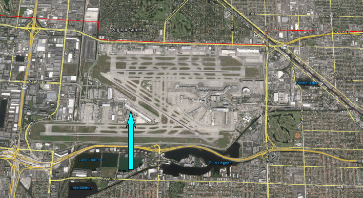 Intercut we see Ma in his hotel room. According to Tom at miamiviceonline.com this was filmed at Miami International Airport, 6485 NW 18th Street.