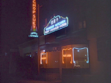 Then we see an exterior establishing shot of a restaurant, location unknown. Likely stock footage. The restaurant is on a hill/incline so not likely in S. Florida. Possibly San Francisco.