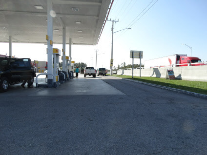 Then we see Crockett motoring along. He was filmed south bound on SW 177th Ave. He stops at the bridge just north of SW 8th Street. Then he turns westbound on SW 8th Street. Adjacent to where they just lit up the gas station.